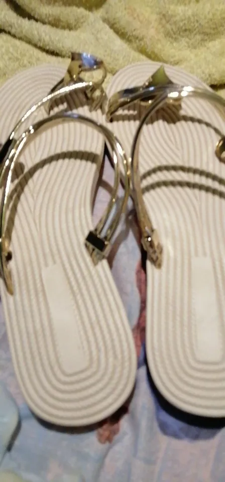 The standout feature is the sweet, metallic heart accent positioned at the center of the straps. This polished detail adds a lovely, decorative touch that elevates the simple flip-flop design.