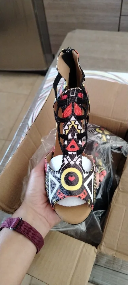 Step onto the dance floor in these stunning, high-energy heels designed for movement and style. Their unique, graphic patterning makes them a standout accessory that radiates confidence and fun.